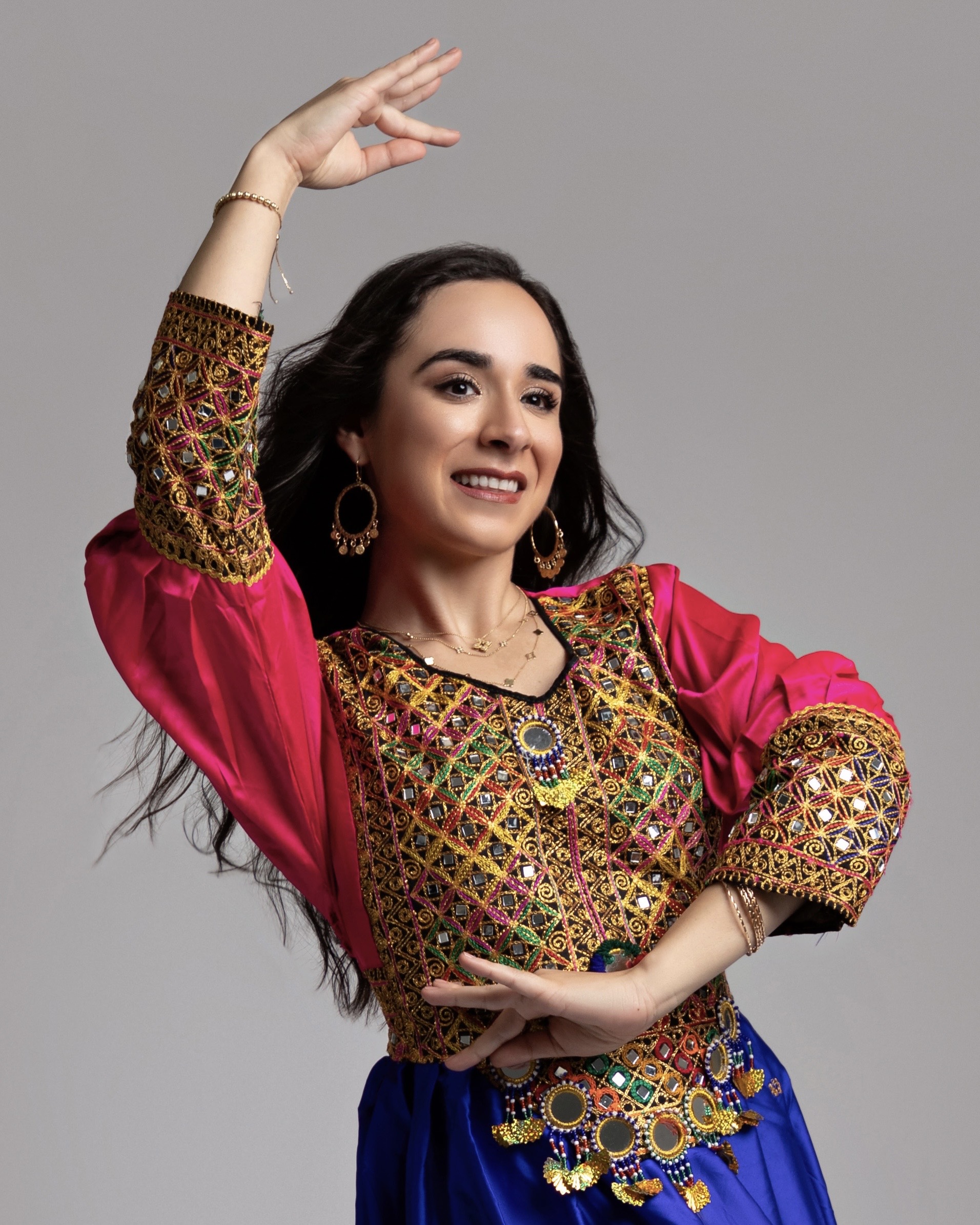 Nikki Farahanchi is a legally blind Iranian American dance artist and choreographer trained in Persian dance and bellydance. Inspired by her Iranian heritage and summer travels to Iran, Nikki has been researching and nurturing the Iranian dance field since 2017. Her art and research investigate themes of female empowerment, freedom, spirituality, and resistance in Iran and the greater Arab World. In particular, Nikki’s research specializes in the politicization of Iranian dancing bodies, examining how historical, cultural, and political implications resulted in the exile of Persian dance from the public sphere of its own homeland. Rooted in historically grounded techniques and culturally representative choreographies, her performances seek to shatter widespread stereotypes and misrepresentations of Iranian and Arab dance forms. Through her artistry, she aspires to preserve and illuminate the richness of Iranian and Arab dance traditions while articulating difficult realities within the region’s sociopolitical climate. Informed by her own experience with vision loss, Nikki reimagines how performance can be experienced through methods such as enhanced audio description and is a dedicated advocate for accessibility in both performance and pedagogy.